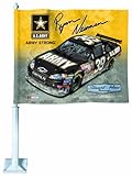 Officially licensed Car Flag made with a durable knit polyester flag. Two sided imprint. The Car Flag is shaped and measures 10.75" high x 14" wide and is attached to a 20.5" long-lasting vinyl pole. Car flags make a great statement throughout the year. 2-sided imprint with explosive graphics Durable knit polyester Long lasting vinyl pole New unique shape Makes a great statement on any car, suv or truck
