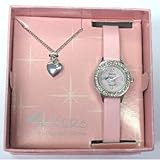 Tikkers Genuine Diamond Pink Girls Watch With Heart Necklace In Presentation Box. This Tikkers Genuine Diamond Pink Girls Watch and Necklace In Presentation Box is an absolute must buy for any kid that loves diamonds and all that glitters! The watch has a metal frame set with cubic zirconias around a pink mother of pearl round shaped dial with one genuine diamond set in the heart near the number 9, and the straps are narrow pink fabric straps to set off the dial. The watch comes inside a presentation box together with a heart shaped necklace set with a sparkling cubic zirconia which really finishes it off beautifully! Its the perfect gift for your precious little girl and can't you just see the sparkle in her eyes when you present her with this diamond watch?!?!?! IMPORTANT NOTICE REGARDING OUR WATCH RETURNS POLICY: Before purchasing any watch, please note our Water Resistance Guideline Information which is clearly stated in our Returns Policy on Amazon. We reserve the rights to refuse a return on any watch if you have not read and followed these guidelines.