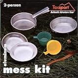 Texsport 2 Person Aluminum Cookware. Set Includes: 7'' fry pan, 6-1/2'' cook pot, two 6'' soup plates, two 8 oz. plastic cups & detachable aluminum handle. Vinyl strap holds all nesting components together. Made by Texsport