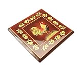 Rooster Floral Trivet has hand painted details that embellish the speckled, deep red-brown backgrounds that features roosters surrounded by trim of floral design. The glossy rooster finish makes the trivet easy to clean. This ceramic trivet remain a must for every person and is practical for any kitchen. Keeps counters and tables protected Heat resistant Durable material Glossy finish Dishwasher Safe