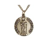 Cast pewter 7/8" round St. Jude medal pendant with bright cut accents. 18" steel chain. Size: 7/8"w x 7/8"h medal. St. Jude Medal