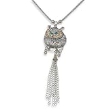 OnSale Ladies Silver 30-Inch Lovely Citrine & Blue Crystal Eye Owl Tassel Pendant Long Necklace