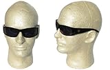 Lightweight retro-style design provides the latest fashion statement. Wide temple design provides structural integrity and stability. Dual lenses with an 8-base curve the provides wrap-around protection. Complete with micro-fiber carry pouch that doubles as a cleaning cloth. Frame Color - Black Lens Material - Polycarbonate Lens Tint - Blue Mirror Wt. - 0.13 lb
