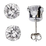 This lovely diamond Earring features 8 mm Round shape cubic zirconia earrings with 925 sterling silver prong setting with silver push back. All CZs are sparkling. All our products with 100% Satisfaction guarantee. SKU # 11415