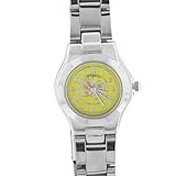 This cute women's watch has a round face. It features a pastel citrus-colored butterfly on a yellow background. The numbers all encircle the butterfly in the center. Crafted and authenticated by Pugster Inc. Metal: STAINLESS STEEL Other: WATER RESISTANT Paint Type: ENAMEL Plating: SILVER TONE